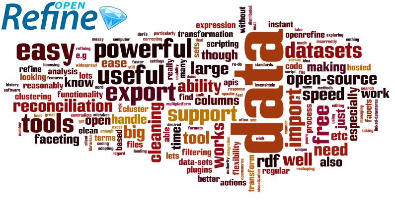 Both in 2012 and 2014 OpenRefine is chosen for its easy and powerful interface to clean large dataset offering reconciliation option. The fact the project is free and open source is also important for a number of user.