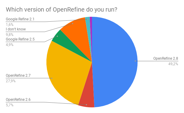 The majority of the respondents use the latest release of OpenRefine (2.8).